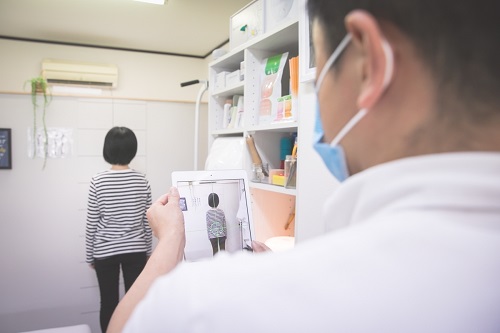問診をもとに、検査を行います。施術者の思い込みに左右されないように最新AIソフトで姿勢分析を行います。また整形外科的検査、シェルパ独自の重心検査などを行い原因を探ります。